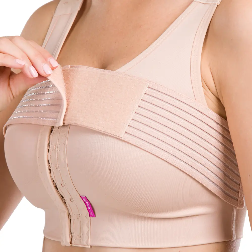 Front closures make the bra easier to wear and remove without lifting your arms, which is especially important immediately after surgery.